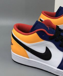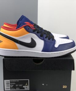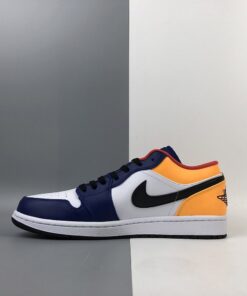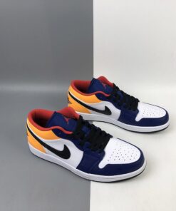 Step up your sneaker game with the Air Jordan 1 Low Blue Yellow Orange. These stylish and vibrant sneakers feature a bold colorway that will make a statement wherever you go. The iconic Air Jordan 1 silhouette offers a comfortable fit and classic style that is perfect for everyday wear. Don’t miss out on adding these eye-catching kicks to your collection. Get your pair now!