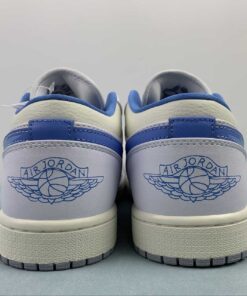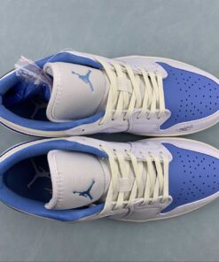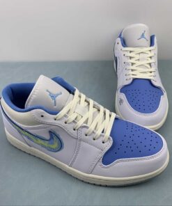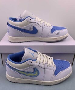 Step up your sneaker game with the Air Jordan 1 Low Born To Fly in White University Blue. These stylish kicks feature a classic low-top silhouette with a fresh colorway that will make you stand out from the crowd. The premium leather upper provides durability and support, while the Air-Sole unit in the heel offers cushioning and comfort with every step. Whether you’re hitting the court or hitting the streets, these Air Jordans are sure to elevate your style. Get your pair today and show off your Born To Fly attitude.