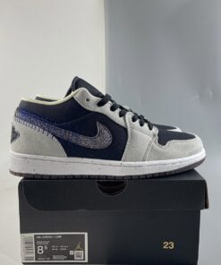 The Air Jordan 1 Low ‘Crater’ in Grey Black is a stylish and versatile sneaker that combines classic Jordan design with sustainable materials. Featuring a sleek grey and black colorway, these sneakers are perfect for everyday wear. The ‘Crater’ design includes recycled materials and a unique speckled midsole for a modern twist. Step up your sneaker game with the Air Jordan 1 Low ‘Crater’ Grey Black.