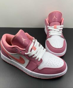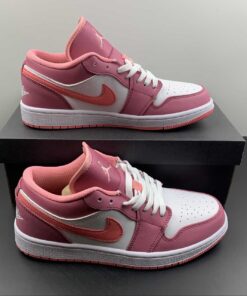 Step up your sneaker game with the Air Jordan 1 Low Desert Berry/Coral Chalk-White. These stylish and versatile sneakers feature a unique color combination of desert berry, coral chalk, and white, making them the perfect addition to any outfit. With the iconic Air Jordan 1 silhouette and comfortable low-top design, these sneakers are sure to turn heads wherever you go. Don’t miss out on your chance to own a pair of these must-have kicks. Get yours today!