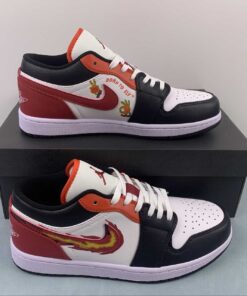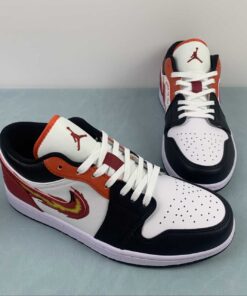 Step up your sneaker game with the Air Jordan 1 Low “Flaming Swoosh” in a striking white, black, red, and orange flame colorway. These stylish kicks feature the iconic Air Jordan silhouette with a unique twist, making them a must-have for any sneakerhead. Whether you’re hitting the court or hitting the streets, these shoes will keep you looking fresh and on-trend. Don’t miss out on adding these eye-catching sneakers to your collection. Get your pair today!