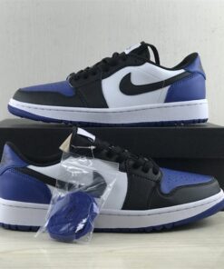 Elevate your golf game with the Air Jordan 1 Low Golf ‘Royal Toe’. Featuring a classic white and game royal colorway, these shoes offer both style and performance on the course. With the iconic Air Jordan design and durable construction, you’ll be sure to turn heads while improving your game. Get your pair today and step up your golf shoe game.