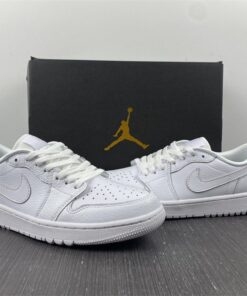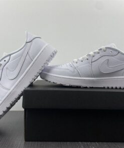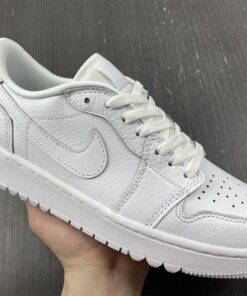 Elevate your golf game with the Air Jordan 1 Low Golf “Triple White” shoes. These stylish and comfortable sneakers feature a classic all-white design that will keep you looking sharp on the course. With the iconic Air Jordan branding and durable construction, these shoes are sure to provide both style and performance for your next round of golf. Get your pair today and step up your golf shoe game.