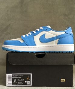 The Air Jordan 1 Low Golf ‘UNC’ White/University Blue combines iconic Jordan style with performance features for the golf course. Featuring a classic white and University Blue colorway, these shoes offer a comfortable fit and excellent traction for all-day play. Perfect for golfers who want to make a statement on the course while staying comfortable and supported. Get your pair today and elevate your golf game in style.