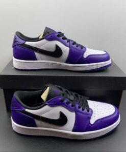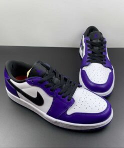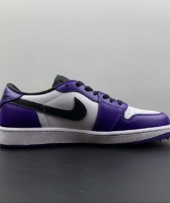 Elevate your golf game with the Air Jordan 1 Low Golf in White/Court Purple-University Red-Black. These stylish and comfortable golf shoes feature the iconic Air Jordan design with a low-top silhouette and a durable rubber outsole for traction on the course. The white leather upper is accented with pops of purple, red, and black for a bold and eye-catching look. Whether you’re hitting the links or just want to add some flair to your wardrobe, these Air Jordan 1 Low Golf shoes are a must-have.