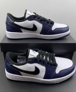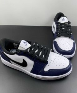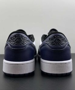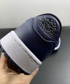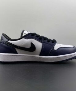 Elevate your golf game with the Air Jordan 1 Low Golf in White/Midnight Navy/Black. This stylish and functional shoe features the iconic Air Jordan design with a low-cut silhouette for enhanced mobility on the course. The white leather upper is accented with navy and black detailing for a sleek look. With a durable rubber outsole and responsive cushioning, these shoes provide the comfort and support you need for all-day play. Upgrade your golf footwear with the Air Jordan 1 Low Golf.