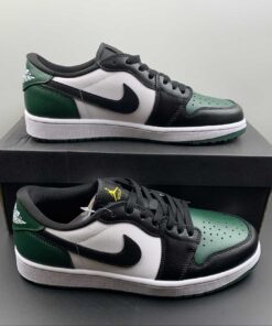 Elevate your golf game with the Air Jordan 1 Low Golf in White/Noble Green/Pollen/Black. This stylish and functional shoe combines the iconic Air Jordan design with the performance features needed for the golf course. With a comfortable fit and durable construction, you’ll be sure to turn heads on and off the course. Get your pair today and step up your golf game in style.