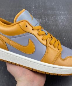 Step up your sneaker game with the Air Jordan 1 Low Grey/Sail/Chutney. This stylish and versatile shoe features a sleek grey and sail colorway with pops of chutney for a unique look. The iconic Air Jordan 1 silhouette offers a comfortable fit and classic style that will elevate any outfit. Whether you’re hitting the court or hitting the streets, these sneakers are sure to turn heads. Don’t miss out on adding these must-have kicks to your collection.