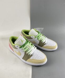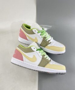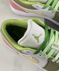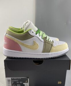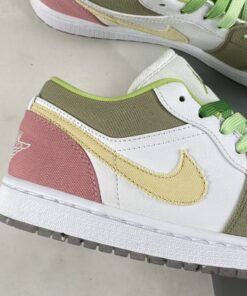 The Air Jordan 1 Low GS Recycled White/Tan-Pink sneakers are a stylish and sustainable choice for young sneakerheads. Made with recycled materials, these shoes feature a classic white and tan colorway with a pop of pink for a fun and trendy look. Perfect for everyday wear or special occasions, these Air Jordans are sure to turn heads wherever you go. Get your pair today and step out in style with these eco-friendly kicks.