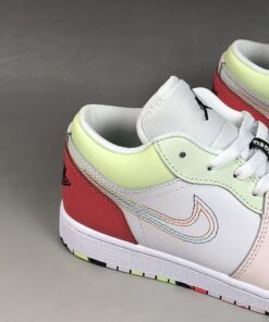 The Air Jordan 1 Low GS in White/Ember Glow-Barely Volt-Black is a stylish and vibrant sneaker for kids. Featuring a sleek white leather upper with pops of ember glow, barely volt, and black accents, these shoes are sure to stand out. The iconic Air Jordan 1 silhouette offers comfort and support for all-day wear. Perfect for young sneakerheads looking to add a bold touch to their wardrobe. Get your pair now!