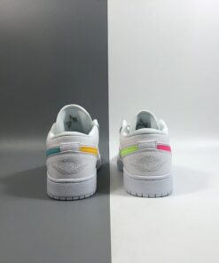 The Air Jordan 1 Low GS White/Multi-Color/Light Aqua is a stylish and colorful sneaker that is perfect for young athletes and sneaker enthusiasts. Featuring a white base with vibrant multi-color accents and light aqua detailing, these shoes are sure to make a statement. With the iconic Air Jordan branding and comfortable design, these sneakers are a must-have for any sneaker collection. Get your pair today and step up your shoe game!