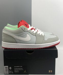 The Air Jordan 1 Low “Hare” in Grey Mist/University Red-Poison is a stylish and versatile sneaker that combines classic design with modern flair. Featuring a sleek grey mist upper with pops of vibrant university red and poison green, these sneakers are sure to turn heads wherever you go. With the iconic Air Jordan branding and comfortable cushioning, these shoes are perfect for both casual wear and athletic activities. Don’t miss out on adding these must-have kicks to your collection. Get your pair today!