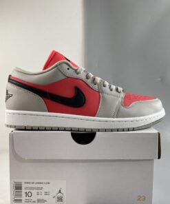 Step up your sneaker game with the Air Jordan 1 Low in Light Iron Ore, Black, and Siren Red. These stylish and versatile sneakers feature a classic low-top silhouette with a mix of premium materials for a sleek look. The iconic Air Jordan logo on the side adds a touch of retro flair, while the cushioned midsole provides all-day comfort. Whether you’re hitting the court or hitting the streets, these Air Jordan 1 Low sneakers are sure to turn heads. Get your pair today and elevate your sneaker collection.