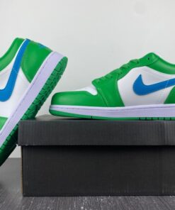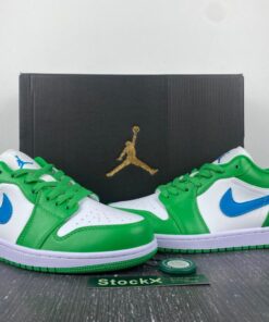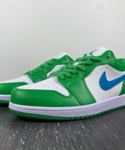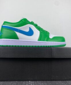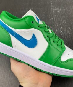 Step up your sneaker game with the Air Jordan 1 Low Lucky Green/Aquatone-White. This stylish and versatile shoe features a vibrant green and aqua colorway, perfect for adding a pop of color to any outfit. The classic Air Jordan 1 silhouette offers comfort and support, while the low-top design adds a modern twist. Whether you’re hitting the court or hitting the streets, these sneakers are sure to turn heads. Don’t miss out on your chance to own a pair of these must-have kicks. Get your hands on the Air Jordan 1 Low Lucky Green/Aquatone-White today!