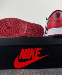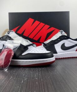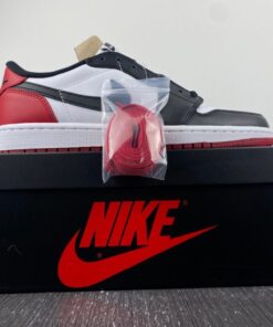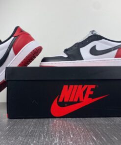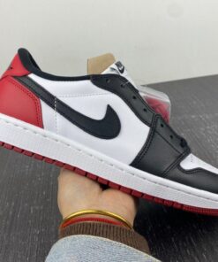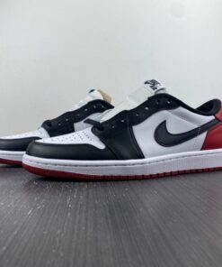 The Air Jordan 1 Low OG “Black Toe” combines classic style with modern comfort. Featuring a white, black, and varsity red colorway, these sneakers are perfect for everyday wear or hitting the court. With the iconic Jordan logo and premium materials, these shoes are a must-have for any sneakerhead. Get your pair today and step up your sneaker game.