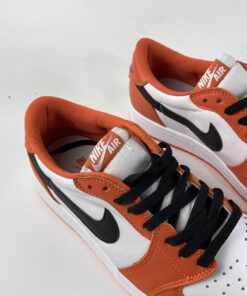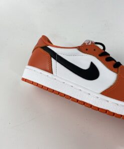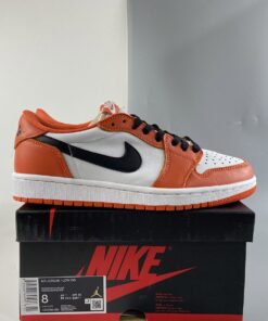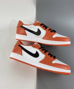 The Air Jordan 1 Low OG “Shattered Backboard” sneakers feature a bold orange, white, and black colorway inspired by the iconic moment when Michael Jordan shattered a backboard during a game. These low-top sneakers offer a classic silhouette with premium materials and cushioned comfort. Perfect for adding a pop of color to your sneaker collection, these Air Jordans are a must-have for any basketball fan or sneaker enthusiast.