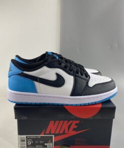 The Air Jordan 1 Low OG ‘UNC’ White/Dark Powder Blue-Black is a classic sneaker that combines style and comfort. Featuring the iconic UNC colorway with a mix of white, dark powder blue, and black, these sneakers are perfect for any casual outfit. The low-top design offers a sleek look, while the Air cushioning provides all-day comfort. Whether you’re hitting the court or the streets, these Air Jordans are sure to turn heads. Get your pair today and step up your sneaker game.