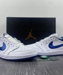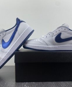 The Air Jordan 1 Low OG White/Midnight Navy is a classic and stylish sneaker that combines a clean white leather upper with navy accents for a timeless look. With the iconic Air Jordan branding and comfortable cushioning, these sneakers are perfect for everyday wear or adding a sporty touch to any outfit. Get your hands on a pair today and step up your sneaker game.
