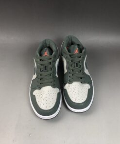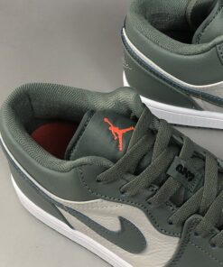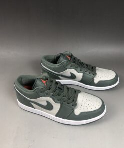 Step up your sneaker game with the Air Jordan 1 Low in a unique olive green and orange colorway. These stylish kicks feature the iconic Jordan brand logo and offer a comfortable fit for all-day wear. Perfect for adding a pop of color to any outfit, these sneakers are a must-have for any sneakerhead. Get your hands on a pair today!