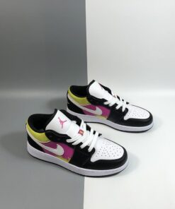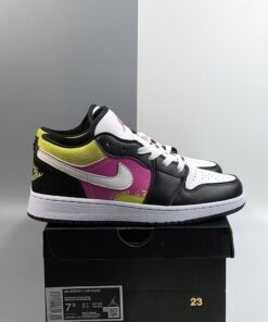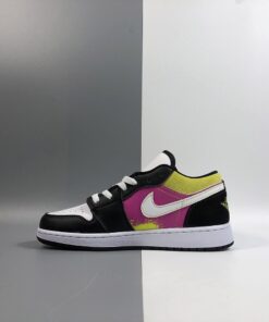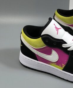 Step up your sneaker game with the Air Jordan 1 Low ‘Paint Splatter’ in a vibrant white, black, yellow, and pink colorway. These stylish kicks feature a unique paint splatter design that adds a pop of color to any outfit. With the iconic Air Jordan branding and comfortable low-top silhouette, these sneakers are perfect for both casual and athletic wear. Don’t miss out on adding these eye-catching shoes to your collection. Get your pair now!