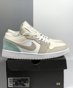 Step up your sneaker game with the Air Jordan 1 Low ‘Paris’ in White/Sky Grey-Football Grey. These stylish and versatile sneakers feature a classic low-top silhouette with premium leather construction and iconic Jordan branding. The clean white and grey colorway adds a modern touch to any outfit, making them perfect for everyday wear. Don’t miss out on adding these must-have kicks to your collection. Get your pair now!