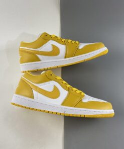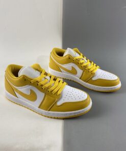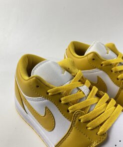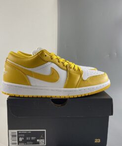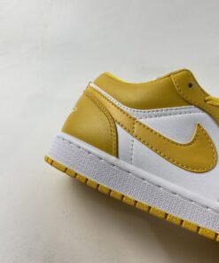 The Air Jordan 1 Low “Pollen” combines classic style with a fresh colorway. Featuring a white leather upper with contrasting black accents and vibrant yellow detailing, these sneakers are sure to turn heads. With the iconic Air Jordan logo on the side and a comfortable fit, these shoes are perfect for both on and off the court. Get your hands on the Air Jordan 1 Low “Pollen” today and step up your sneaker game.