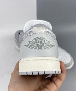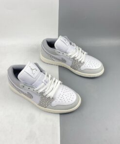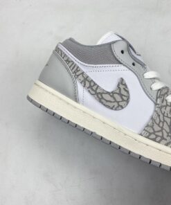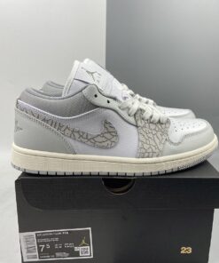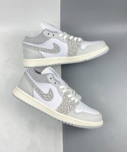 Step up your sneaker game with the Air Jordan 1 Low PRM “Elephant Print” in White/Neutral Grey-Sail-Smoke Grey. These premium sneakers feature a stylish elephant print design, combining classic style with a modern twist. With a comfortable low-top silhouette and iconic Air Jordan branding, these shoes are perfect for everyday wear or a night out on the town. Don’t miss out on adding these must-have kicks to your collection. Get your pair now!