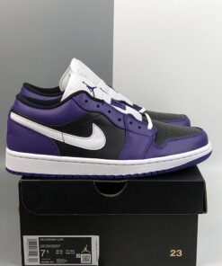 Step up your sneaker game with the Air Jordan 1 Low Purple Black. These stylish kicks feature a sleek purple and black colorway, perfect for adding a pop of color to any outfit. The iconic Air Jordan 1 silhouette offers a comfortable fit and classic style that will have you turning heads wherever you go. Don’t miss out on your chance to snag a pair of these must-have sneakers for sale now.