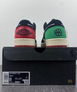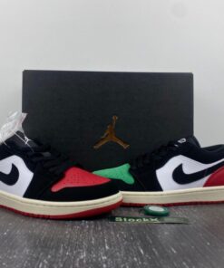 The Air Jordan 1 Low ‘Quai 54’ in White/Black-Red-Green is a stylish and eye-catching sneaker that combines classic Jordan design with vibrant colors. Perfect for both on and off the court, these sneakers feature a low-top silhouette and premium materials for a comfortable fit. With the iconic Jordan logo and Quai 54 branding, these sneakers are a must-have for any sneakerhead. Get your hands on a pair today and step up your sneaker game.