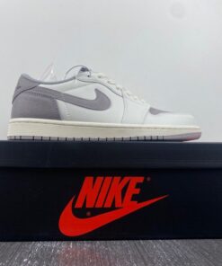 The Air Jordan 1 Low Retro OG “Sail Atmosphere Grey” is a classic sneaker with a modern twist. Featuring a sleek low-top design and a stylish colorway of sail white and atmosphere grey, these shoes are perfect for everyday wear. The iconic Air Jordan logo on the side adds a touch of retro flair, while the comfortable cushioning and durable construction make them ideal for all-day comfort. Whether you’re hitting the court or hitting the streets, these Air Jordans are sure to turn heads. Get your hands on a pair today!