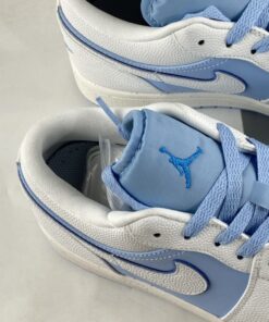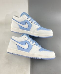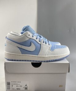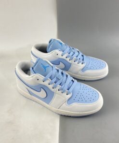 The Air Jordan 1 Low Sail/Dark Powder Blue-Ice Blue sneakers are a stylish and versatile addition to any sneaker collection. Featuring a sleek low-top design with a mix of sail, dark powder blue, and ice blue colors, these sneakers are perfect for everyday wear. The iconic Air Jordan logo on the side adds a touch of classic style, while the comfortable cushioning and durable construction make them ideal for all-day comfort. Don’t miss out on the chance to add these trendy sneakers to your wardrobe.