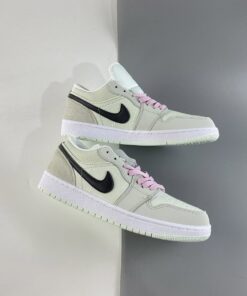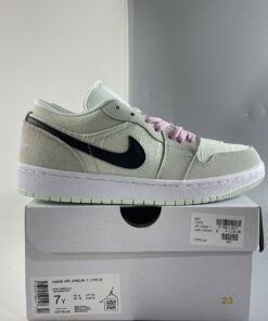 Step up your sneaker game with the Air Jordan 1 Low SE in Barely Green/Black-Light Arctic Pink-White. These stylish and versatile sneakers feature a unique colorway that will make you stand out from the crowd. With the iconic Air Jordan 1 silhouette and comfortable low-top design, these shoes are perfect for everyday wear. Don’t miss out on adding these must-have kicks to your collection. Get your pair now!
