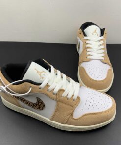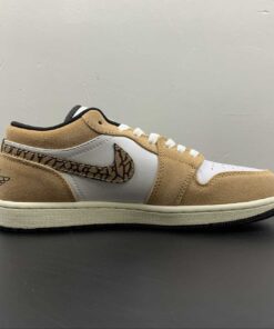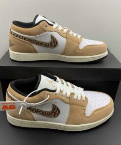 Step up your sneaker game with the Air Jordan 1 Low SE “Brown Elephant” in a stylish hemp and metallic gold colorway. These sneakers feature a unique elephant print design on the upper, giving them a bold and eye-catching look. With the iconic Air Jordan 1 silhouette and comfortable low-top design, these shoes are perfect for everyday wear. Add a touch of luxury to your sneaker collection with the Air Jordan 1 Low SE “Brown Elephant.”