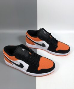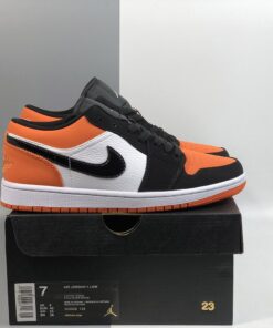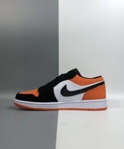 The Air Jordan 1 Low “Shattered Backboard” combines iconic style with a fresh colorway. Featuring a white and black leather upper with pops of starfish orange, these sneakers are a must-have for any sneakerhead. With the classic Air Jordan 1 silhouette and low-top design, these shoes offer both style and comfort. Don’t miss out on adding these limited edition kicks to your collection.