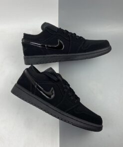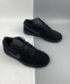The Air Jordan 1 Low “Triple Black” is a sleek and stylish sneaker that offers a classic look with a modern twist. Featuring a black leather upper, black laces, and a black rubber outsole, this shoe is perfect for any casual or athletic outfit. With the iconic Air Jordan logo on the side, these sneakers are sure to turn heads wherever you go. Get your hands on a pair today and step up your sneaker game.