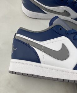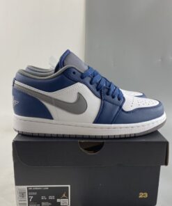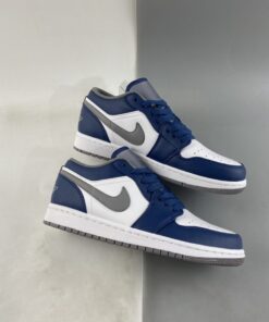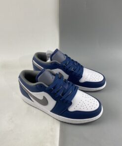 Step up your sneaker game with the Air Jordan 1 Low True Blue/White/Cement Grey. These iconic sneakers feature a classic colorway with a modern twist, perfect for adding a pop of style to any outfit. With the signature Air Jordan branding and comfortable cushioning, these shoes are a must-have for any sneakerhead. Don’t miss out on the chance to own a piece of sneaker history – get your pair today!