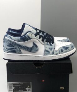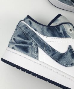 The Air Jordan 1 Low “Washed Denim” is a stylish and versatile sneaker that combines classic design with modern details. Featuring a denim upper with contrasting white accents, this shoe offers a unique and on-trend look. The Air Jordan 1 Low silhouette provides a comfortable fit and the iconic Air Jordan logo adds a touch of heritage. Perfect for everyday wear or a night out, these sneakers are a must-have for any sneakerhead. Get your hands on the Air Jordan 1 Low “Washed Denim” today.