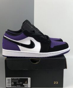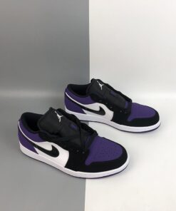 Step up your sneaker game with the Air Jordan 1 Low in White/Black-Court Purple. These stylish and versatile sneakers feature a classic colorway with a pop of purple for a unique touch. The low-top design offers a comfortable fit, while the iconic Air Jordan branding adds a touch of streetwear flair. Whether you’re hitting the court or the streets, these sneakers are sure to turn heads. Get your hands on a pair today and elevate your sneaker collection.