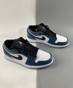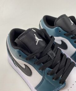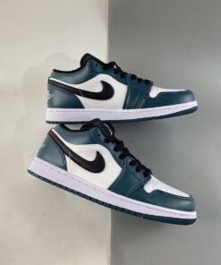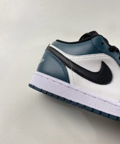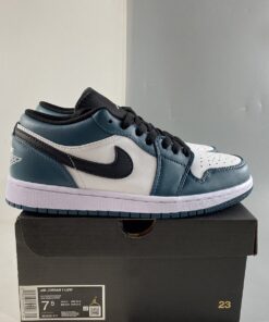 Step up your sneaker game with the Air Jordan 1 Low in White/Dark Teal-Black. This iconic silhouette features a sleek white leather upper with contrasting dark teal and black accents for a bold and stylish look. The Air Jordan 1 Low is perfect for everyday wear and will add a touch of streetwear flair to any outfit. Don’t miss out on this must-have sneaker – get your hands on a pair today!