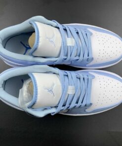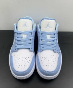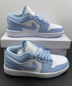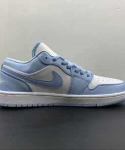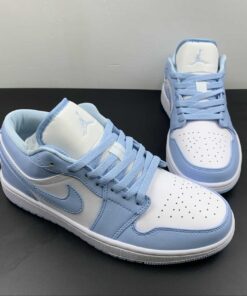Step up your sneaker game with the Air Jordan 1 Low White/Ice Blue. This classic silhouette features a clean white leather upper with icy blue accents for a fresh and stylish look. The iconic Air Jordan wings logo is prominently displayed on the heel, while the Air-Sole unit provides cushioning and support for all-day comfort. Whether you’re hitting the court or the streets, these sneakers are sure to turn heads. Don’t miss out on adding these must-have kicks to your collection. Get your pair today!