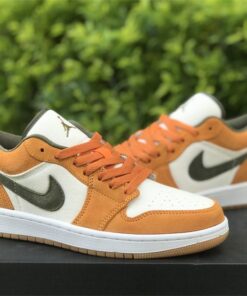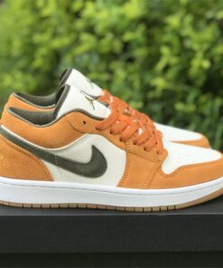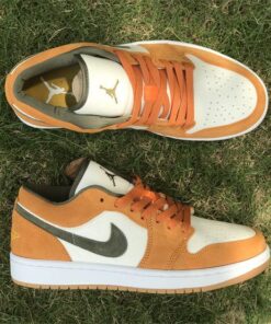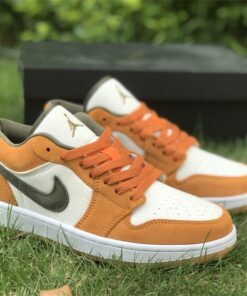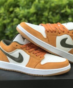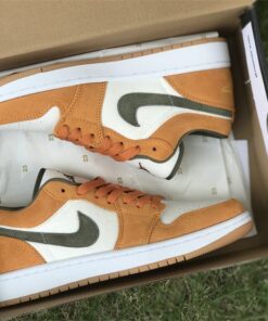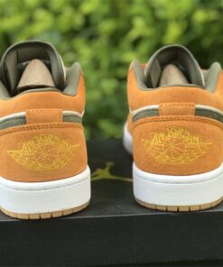 The Air Jordan 1 Low White/Light Curry/Medium Olive is a stylish and versatile sneaker that combines classic design with modern flair. Featuring a clean white upper with pops of light curry and medium olive, these sneakers are perfect for adding a pop of color to any outfit. With the iconic Air Jordan branding and comfortable cushioning, these shoes are a must-have for any sneakerhead. Get your pair today and step up your sneaker game.