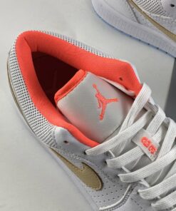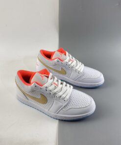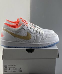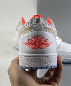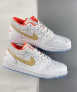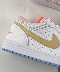 Step up your sneaker game with the Air Jordan 1 Low in White/Sesame-Flash Crimson-Psychic Blue. These stylish kicks feature a classic low-top silhouette with a fresh colorway that will make a statement wherever you go. The premium materials and iconic Air Jordan branding ensure both style and quality. Don’t miss out on adding these must-have sneakers to your collection. Get your pair now!