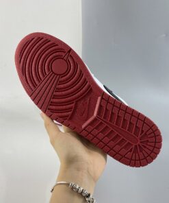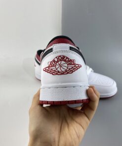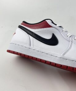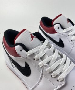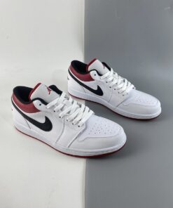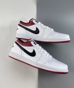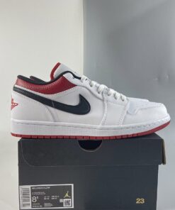 The Air Jordan 1 Low White University Red Black is a stylish and versatile sneaker that combines classic design with modern flair. Featuring a clean white leather upper with bold red and black accents, these sneakers are perfect for adding a pop of color to any outfit. The iconic Air Jordan logo on the side adds a touch of sporty appeal, while the low-top silhouette offers a comfortable and casual fit. Whether you’re hitting the court or hitting the streets, these Air Jordan 1 Lows are sure to turn heads.