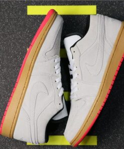 The Air Jordan 1 Low in White/White-Gym Yellow-Hyper Pink is a stylish and versatile sneaker that combines classic design with vibrant pops of color. Featuring a sleek white leather upper with bold yellow and pink accents, these sneakers are perfect for adding a fun and trendy touch to any outfit. With the iconic Air Jordan branding and comfortable cushioning, these shoes are a must-have for any sneakerhead or fashion enthusiast.