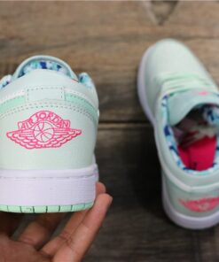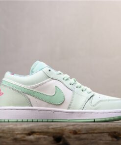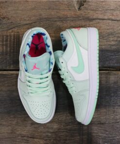 Step up your sneaker game with the Air Jordan 1 Low WMNS in Barely Grey/White-Laser Fuchsia-Frosted Spruce. These stylish and versatile sneakers feature a sleek low-top design with a mix of soft pastel colors for a fresh and modern look. The iconic Air Jordan branding adds a touch of sporty flair, while the comfortable cushioning and durable construction make them perfect for everyday wear. Whether you’re hitting the gym or running errands, these sneakers will keep you looking and feeling great.