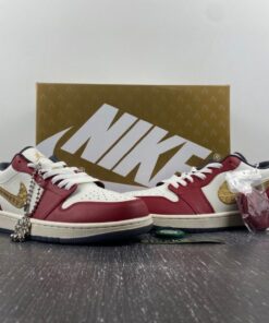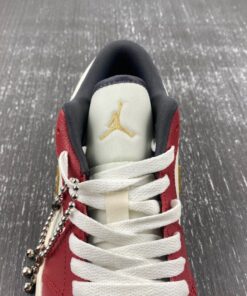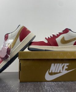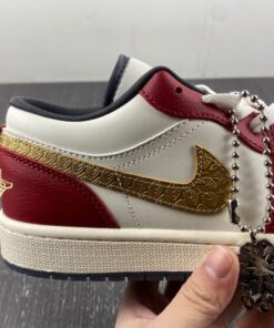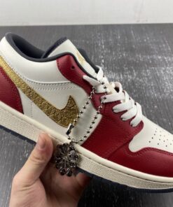 Celebrate the Year of the Dragon in style with these Air Jordan 1 Low sneakers. Featuring a sleek white, red, and gold colorway, these shoes are sure to turn heads wherever you go. With the iconic Air Jordan silhouette and premium materials, these sneakers offer both style and comfort. Add a touch of luxury to your sneaker collection with the Air Jordan 1 Low Year of the Dragon.