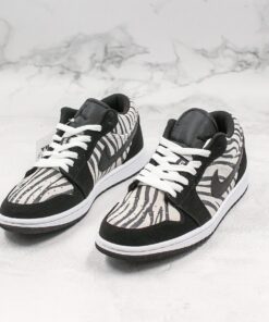 The Air Jordan 1 Low “Zebra” combines classic style with a modern twist. Featuring a black and white zebra print design, these sneakers are sure to make a statement. The low-top silhouette offers a comfortable fit, while the iconic Air Jordan branding adds a touch of retro flair. Perfect for everyday wear or a night out, these sneakers are a must-have for any sneakerhead. Get your hands on the Air Jordan 1 Low “Zebra” before they sell out!