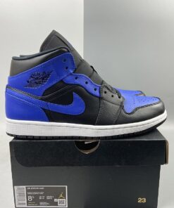 Step up your sneaker game with the Air Jordan 1 Mid Black/Hyper Royal-White. These iconic sneakers feature a sleek black and white colorway with a pop of hyper royal blue for a bold and stylish look. The high-top design and cushioned midsole provide all-day comfort, making them perfect for both casual wear and athletic activities. Don’t miss out on adding these classic kicks to your collection. Get your pair today!
