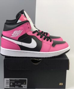 Step up your sneaker game with the Air Jordan 1 Mid Black/White-Pinksicle. These stylish kicks feature a classic black and white colorway with a pop of pink on the Swoosh logo and outsole. The iconic Air Jordan silhouette is perfect for everyday wear or hitting the court. Don’t miss out on adding these must-have sneakers to your collection. Get your pair now!