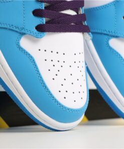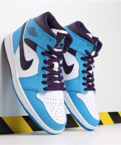Step up your sneaker game with the Air Jordan 1 Mid in Blue Lagoon/Grand Purple-White. These stylish kicks feature a bold colorway that will make a statement wherever you go. The iconic Air Jordan silhouette is complemented by premium materials and cushioned support for all-day comfort. Whether you’re hitting the court or the streets, these sneakers are sure to turn heads.